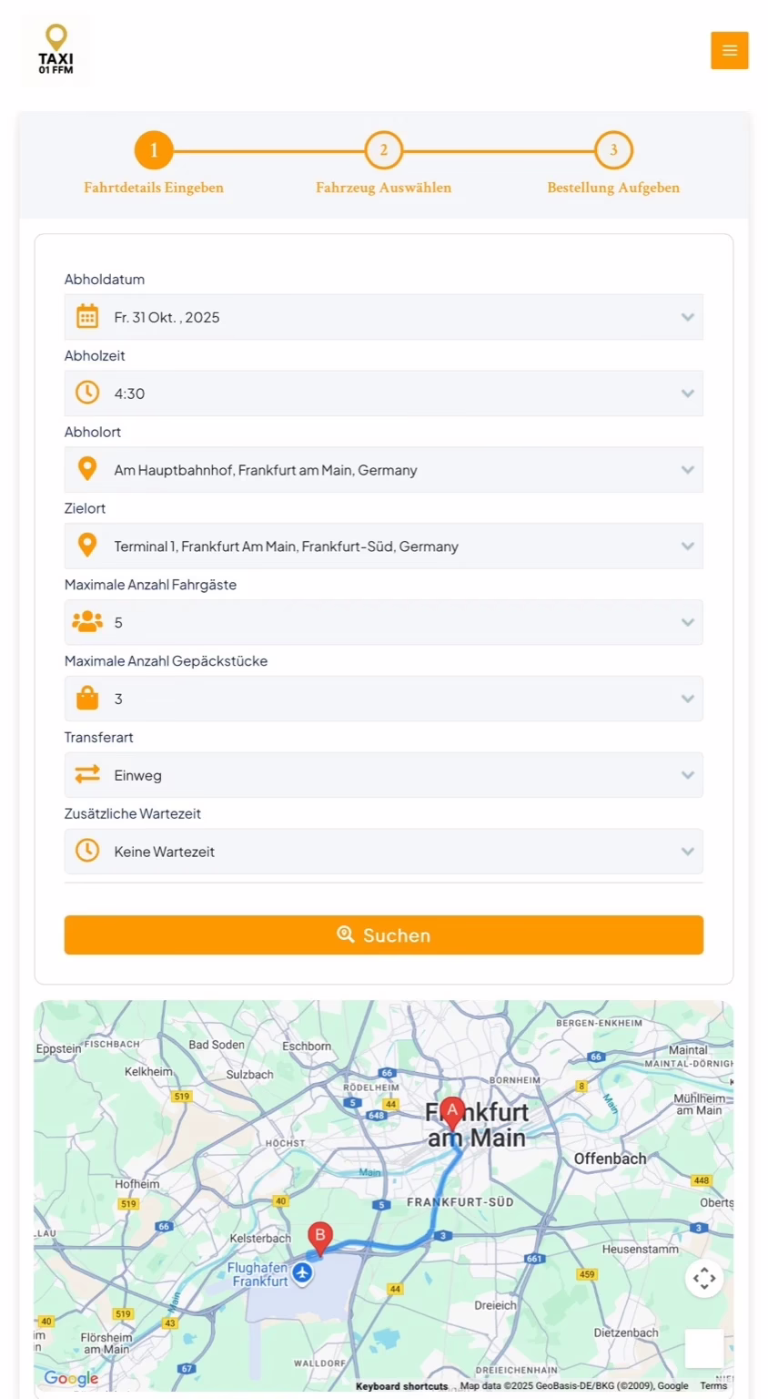 Schritt-für-Schritt-Anleitung zur Buchung einer Fahrt mit dem Taxi 01 FFM Buchungssystem